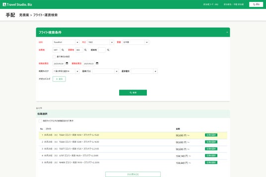 企業様ごとにご利用されるGDSを選択可能で、企業ポリシーの設定による予約制限なども行えます。BTMシステムと連携することにより『Travel Studio Biz』内で予約情報の自動連携が行えますが、豊富な連携機能も実装しているため、本システム単体での導入も可能となっております。