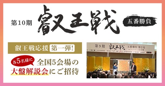 各地で行なわれる叡王戦五番勝負の大盤解説会に、抽選で各5名様をご招待いたします。