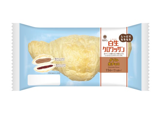 【内容】生クリームを加えたしっとりもちもちとした白生クロワッサンに、生クリーム入りのチョコクリームと生クリーム入りのチョコホイップをサンドしました。