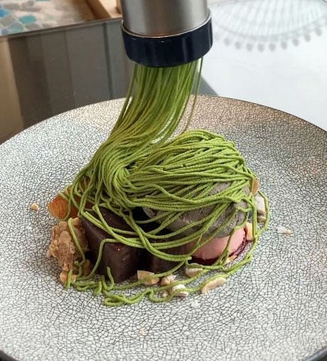 「絞りたてモンブラン」は、お客さまの目の前でスタッフがクリームを絞って仕上げる、「ソマーハウス」で好評提供中のデザートです。5~6月は、上品な香りの抹茶クリームを用いた“和”のテイストでご用意いたします。