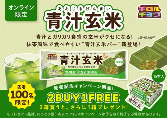 チロルチョコ株式会社(東京都千代田区、代表取締役社長・松尾裕二)は「青汁玄米バー」を3月24日(月)正午12:00よりチロルチョコ公式オンラインショップ限定で発売します。