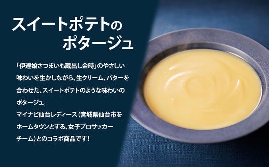 「スイートポテトのポタージュ」は、宮城県のおいしい素材を全国に広め、地域貢献につなげたいという想いから「宮城の素材シリーズ」として2020年から毎年発売をしてきました。