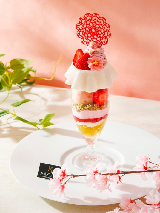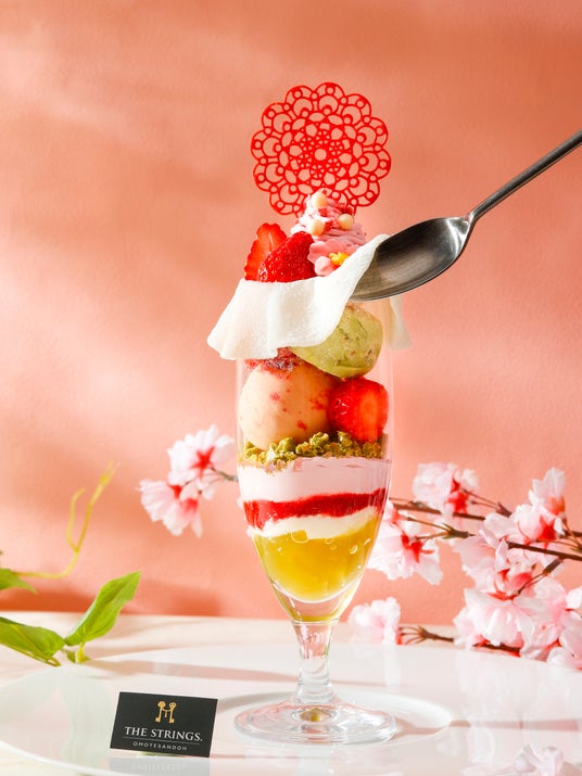 ザ ストリングス 表参道がお届けする春のパフェは、桜といちごを主役に迎え、“桜&いちご×お茶&ピスタチオ”のダブルコンビネーションの味わいをお楽しみいただけます。