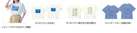 ※「海遊館コラボ海の生き物と過ごすプリントTシャツ」:オフホワイト(海の生き物大集合)、ラベンダーブルー(南極大陸)の110・130・レディースサイズを展開予定。数に限りがあります。売り切れの場合はご了承ください。