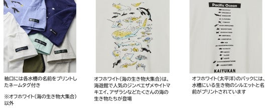 「海遊館」にある各水槽に設けられたテーマ(太平洋・北極圏・南極大陸など)をモチーフにデザインしたTシャツです。「海遊館」で海の生き物たちと出会ったときの驚きや楽しさをデザインで表現しました。メイン生地は綿100%の天竺素材を使用し、柔らかく優しい肌触りです。適度にゆとりを持たせたトレンドのシルエットもポイントです。親子でお揃いのコーディネートを楽しめるよう、一部の柄はレディースサイズも展開しています。