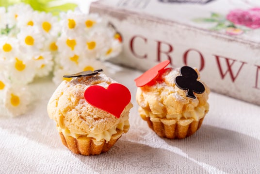 ブリオッシュ生地にはちみつクリームとはちみつのジュレを配し、サクサクのクッキー生地で焼き上げた「トランプの兵隊トロペジェンヌ」、まるで仔猫の香箱座りのようなフォルムが可愛い「チェシャ猫クロワッサン」は2種類のココアを練り込んだバイカラークロワッサンで、中にはフランスの高級ショコラメゾン ヴァローナのビターチョコレート「カライブ」のガナッシュを忍ばせました。
