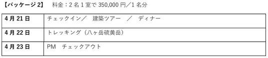 なお、国内のお客様のために以下の2つのコンパクトな宿泊プランもご用意しています。