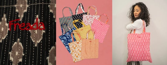 インドの工場で使われなかった残反を使用したトートバッグは10柄から選んでいただけます。