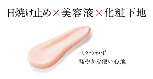3種の原液*を独自の”美肌比率”で調合して作った、くすみ*1をケアしながらひと塗りでワントーン明るい*2ツヤ肌に仕上げるUV美容液。自然なピンクベージュで、白浮きせずにくすみや色ムラ、毛穴をなめらかに補正*2します。