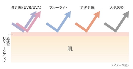 紫外線(UVA/UVB)だけでなく、ブルーライト、近赤外線、大気汚染からも肌を守ります。