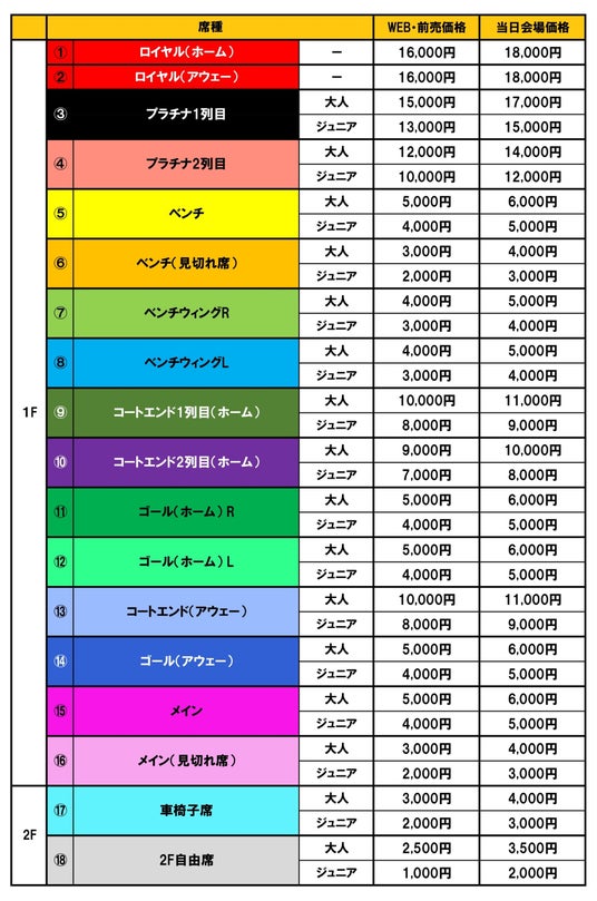 1Fの一部座席は対戦クラブが決定次第、販売を開始いたします。