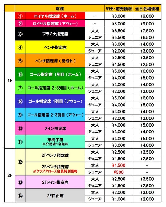※12.2Fベンチ指定席のクラブアローズ会員価格は、WEB販売時のみ対象です。