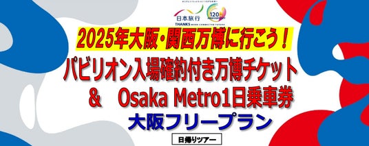株式会社日本旅行(本社:東京都中央区、代表取締役社長:小谷野悦光)は、2025年大阪・関西万博の開催に合わせ、パビリオン入場確約付きの大阪フリープラン(日帰り商品)を発売しました。