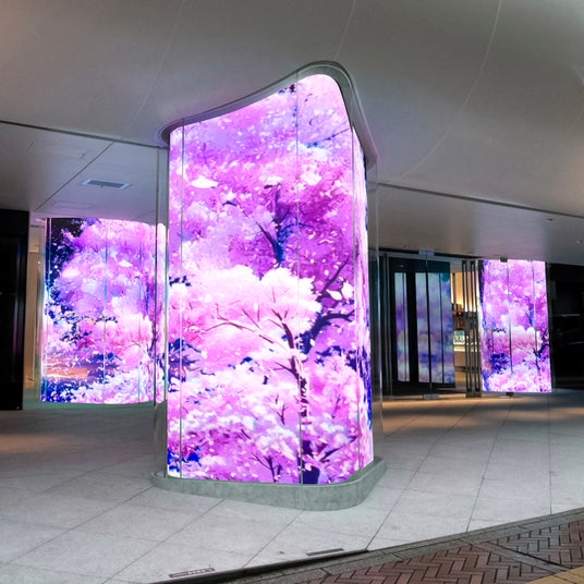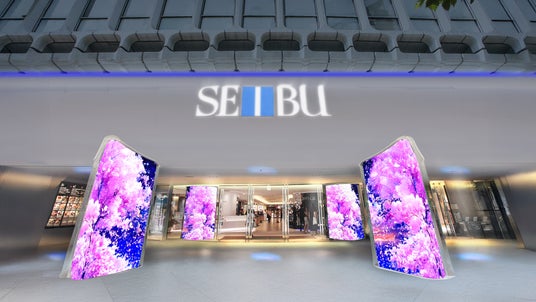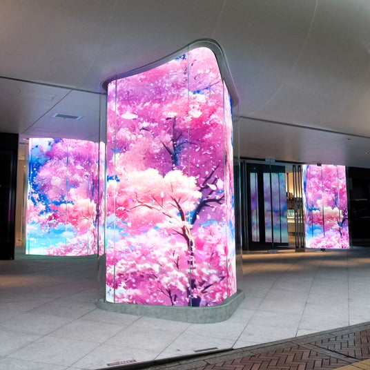 西武渋谷店のA館1階エントランスにある高さ約3メートルのLEDビジョンが組み込まれたアートゲートにはAIで作成したデジタルアートの桜が登場。