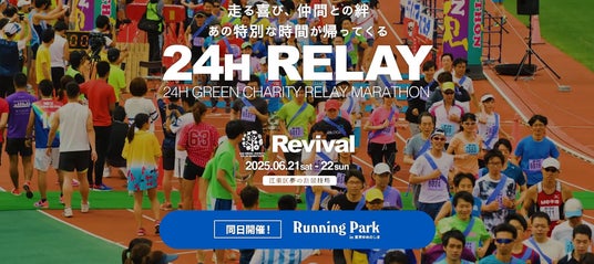6月21日(土)、22日(日)、東京・江東区夢の島競技場及び園路にて「第20回 24時間グリーンチャリティリレーマラソン in東京ゆめのしま」を開催。本日3月24日(月)18時よりエントリーがスタートしました。