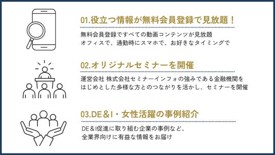 金融機関向けプロモーションサービスを提供する株式会社セミナーインフォ(本社:東京都千代田区 代表:小西 亘)は、DE&I・女性活躍を応援する動画サービス、PLACEY(プレイシー)を開始しました。