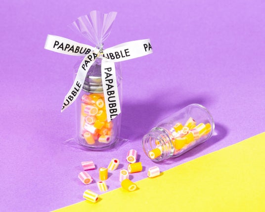 新米職人の失敗を取り返すべく、熟練職人が挑戦したのは「世界一小さなキャンディ」です。直径約5mmの米粒ほどの小さなキャンディを、PAPABUBBLEの職人のプライドをかけて制作しました。通常のキャンディの約1/7の質量、1粒あたりの重さはなんと0.2gと、この小ささに誰もが驚くこと間違いなしです。もちろん、このキャンディもエイプリルフール特別アイテムです。