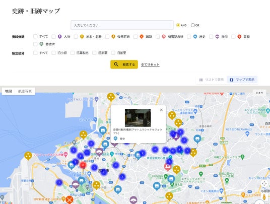 那覇市内の文化財の場所を地図上に表示した、「史跡・旧跡マップ」と、史跡を散策する「モデルコース」機能を制作しました。