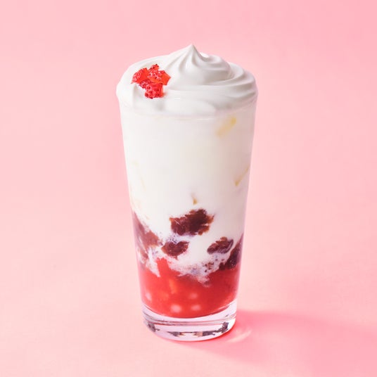 混ぜながら飲み進めていくと、「苺大福」を思わせる味わいや食感をお楽しみいただけます。