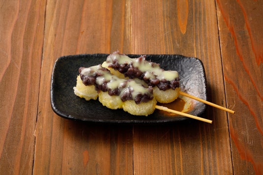 もち天あんバターもちもち串を天ぷらにして、北海道十勝産のあずきを無添加で仕上げた、たっぷりのこだわりあんことバターソースをトッピングしました。甘じょっぱい味付けで、お酒のおつまみとしてはもちろん、デザートとしてもお愉しみいただけます。