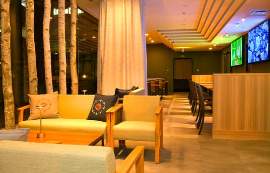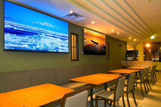 ラウンジ入り口から空間が広がるメインフロアまで、札幌ビューホテル宿泊者の皆様に、ラウンジ内のモニターに映される北海道の素晴らしい景色の中にいるような自然なサウンドを楽しみながら、特別なひとときをお届けいたします。