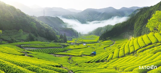 佐藤園がある大原地区は、そのなかでも優れた新芽が育つ風土に恵まれた、特別なお茶の里です。大原に広がる自社茶園のなかに製茶工場を持ち、直売所でもあるお茶カフェで皆さまをお迎えしています。