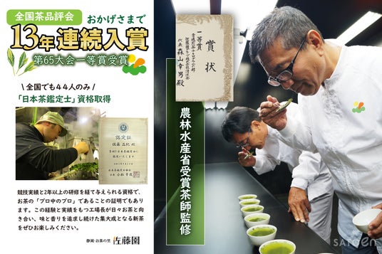 徳川家康が愛した味わい深い本山茶を生産する佐藤園 の「安倍の清流」が、初エントリーで最高評価グランプリ受賞!