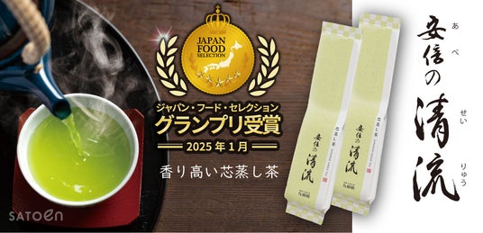 お茶の本場静岡で70年以上お茶作りを続ける株式会社佐藤園(本社:静岡市葵区)が販売する、安倍の清流が、一般社団法人日本フードアナリスト協会が主催する第83回ジャパン・フード・セレクションで「グランプリ」を受賞しました。23,000人のフードアナリストから、90点台の「グランプリ」相当と評価した人は全体の82%を占め、総合評価では94点の高評価で「グランプリ」を受賞しました!