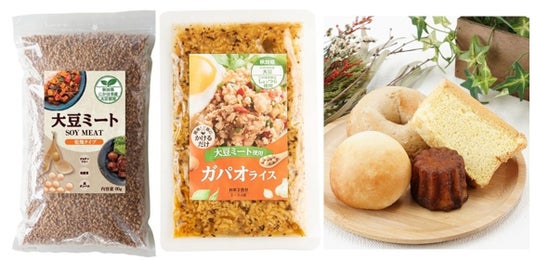 秋田県にかほ市産、規格外の大豆を使った「大豆ミート」で作る『ガパオライスの素』とサキホコレを使った『米粉パンシリーズ』を新発売。