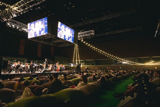 オーケストラの目の前で寝そべり、生演奏を浴びることができる、臨場感たっぷりのお席です。