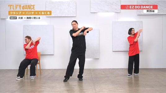初期搭載として、TRFの人気曲4曲を用意しました。それぞれダンスのポイントを解説する“レクチャー編”と、SAMを中心に立位と座位のダンサーが踊る“実践編”に分かれています。“実践編”には歌詞テロップとガイドボーカルが入っていることから、歌いながら体を動かすことによる“デュアルタスク効果”も見込めます。