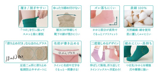 『ほのん』は、誰もが心地良く、安心して履ける靴下です。片手でスルリと履ける独自のデザインは、