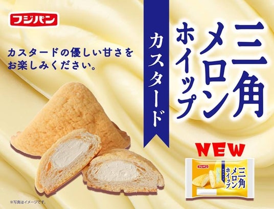 フジパン株式会社(愛知県名古屋市)は、新商品『三角メロンホイップ カスタード』を2025年4月1日(火)より発売いたします。「三角メロンホイップ」は、ユニークな形状とホイップが特長のデニッシュメロンパンとして、多くのお客様に人気の商品です。今回の『三角メロンホイップ カスタード』は、幅広い世代に人気のカスタードをクッキー生地とホイップに使用し、カスタードの優しい甘さをお楽しみいただける仕立てとなっております。