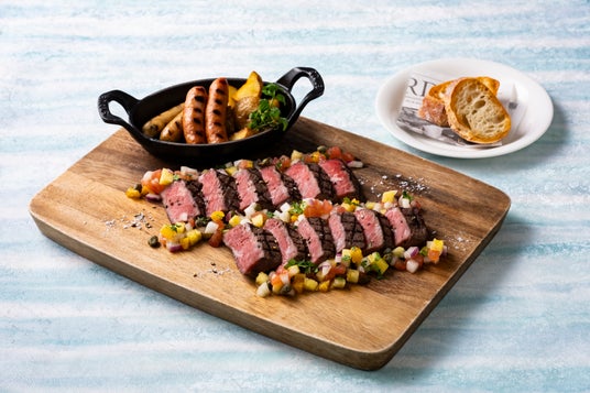 スタミナ満点の牛肉のグリルとソーセージに、トマトやケーパー、パイナップルなど酸味の効いたラビゴットソースをのせた一皿。フランス語で『元気を出させる』という意味を持つソースで夏バテを吹き飛ばします。
