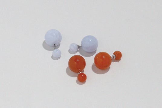 天然石のブルーレースとレッドアベンチュリンをキャッチにも使用した贅沢な限定アイテム。¥4,950(税込)