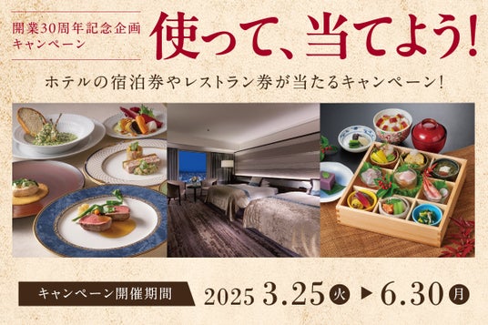 30年の感謝を込めて、宿泊券やレストラン券が当たるキャンペーンを開催いたします。