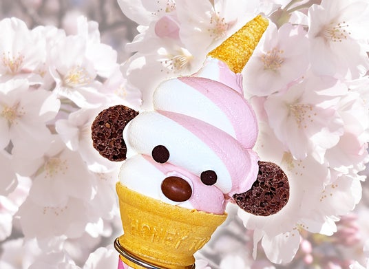 公園内の売店やレストランでは、春のお花見にもぴったりな公園オリジナルのメニューをご用意しています。ふきのとうの風味が香る「桜と山のピザ」や、さくら味の「くまさんソフト」など、ぜひご賞味ください!