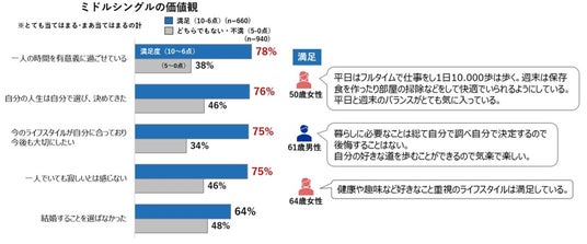 LONGLIFE総合研究所ミドルライフ研究会 調査研究第二弾 現在のくらしに満足しているミドルシングルの実態が明らかに