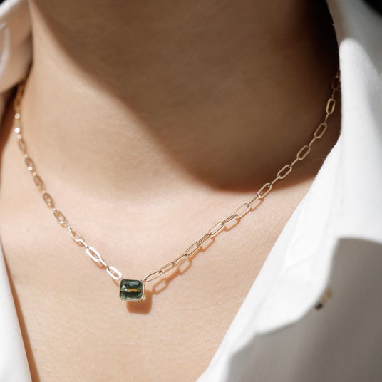 自分らしさ・意志を天然石に込めることで、自分の存在感を強め、自信を与えてくれるチェーンネックレス。これまで控えめな印象があった天然石ネックレスの新たな魅力を引き出すために、太さのあるクリップチェーンを採用し、石の存在感が引き立つデザインに。天然石の持つラグジュアリーな雰囲気はそのままに、デイリーにも特別なシーンにもなじむ、上品でありながら付ける人の意志を感じさせるネックレスが誕生しました。それぞれに個性がある色とりどりの天然石の中から、自分らしい1点を選び、ぜひこの春ご自身を輝かせてみてください。
