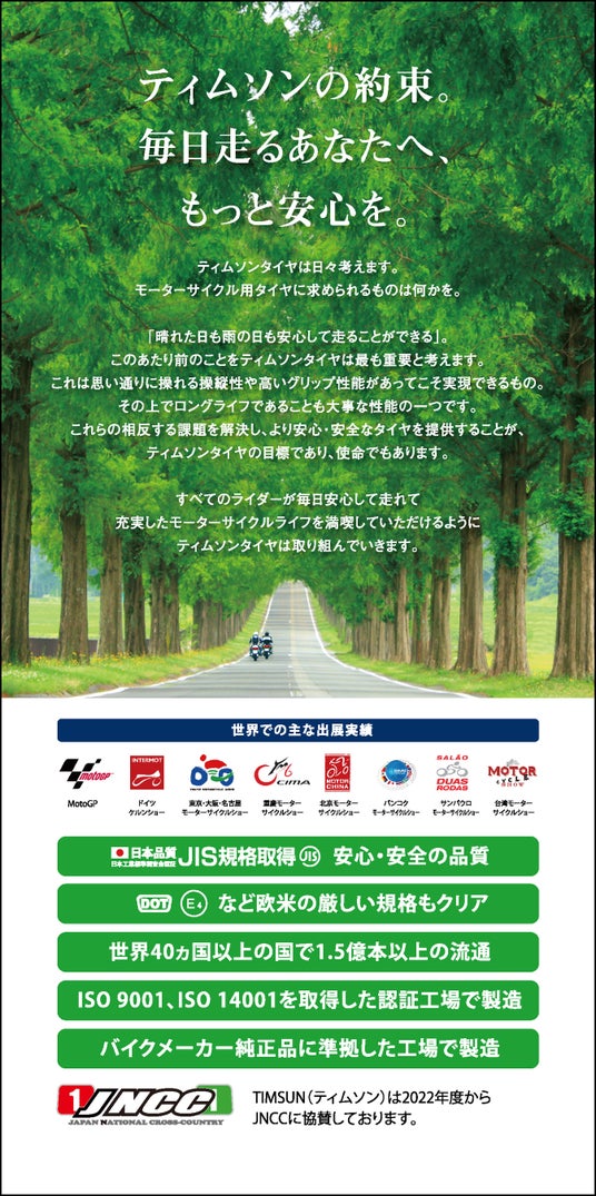 第52回東京モーターサイクルショー(2025年3月28日~30日 東京ビッグサイト 東2ホール2-52)において、弊社が日本総代理を務めるグローバルタイヤブランドTIMSUN(ティムソン)のブースを出展いたします。