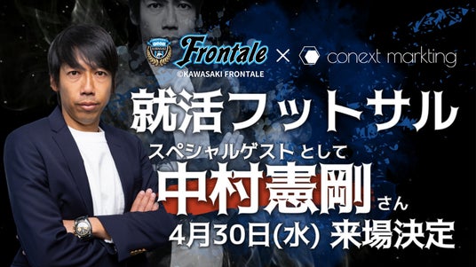 株式会社Conext Markting(本社:東京都品川区、代表取締役:小田原敬介、以下「コネクトマーケティング」)は、2025年4月30日(火)14時より、Jリーグ・川崎フロンターレと共同で「就活フットサル」第2弾を開催いたします。今回は、川崎フロンターレのレジェンド・中村憲剛FROをスペシャルゲストとして迎え、特別トークとエキシビジョンマッチを実施いたします。