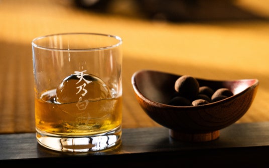 ロックで氷によってライスウイスキーを冷やすことで口当たりをよくするとともに、アルコールによる刺激を和らげます。
