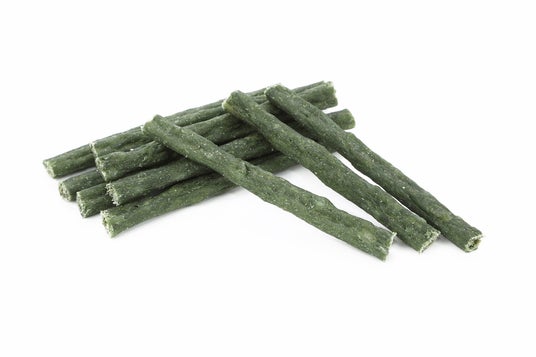低カロリー(1本あたり6.5kcal)なので、歯磨き後のご褒美にも最適。手でポキッと折れる程度の硬さなのでローハイドガムが苦手な子にも。