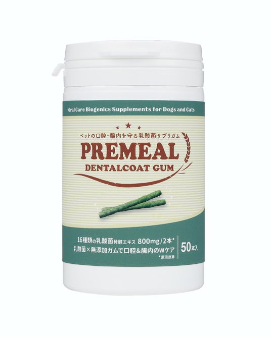 お口と腸内を守る16種類の乳酸菌サプリガム『PREMEALデンタルコートガム』新発売。愛犬愛猫の口腔・腸内環境のケアに。