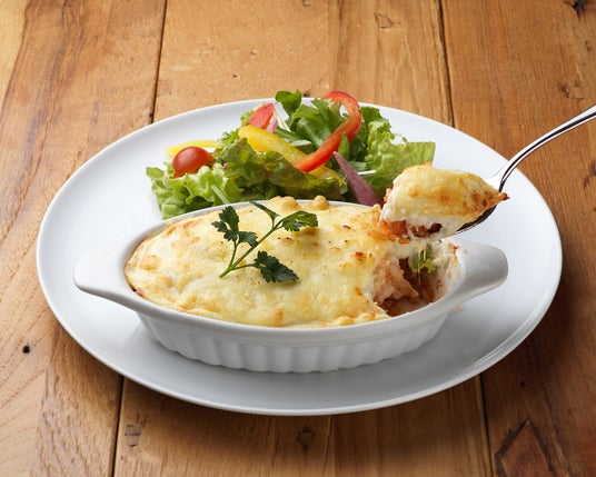 春が旬のたけのこやそら豆に、ほっくりとした甘さの道産きたあかり、むきエビの旨みを活かしたドリアです。トマトの味 わいがクセになるケチャップライスにコク深い特性ベシャメルソースを合わせ、ほどよい塩味のチーズを散らし焼き上げました。