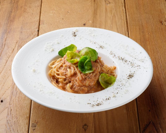 甘みたっぷりの春キャベツと桜の風味を閉じ込めたソースが春を感じさせる、香り高いボロネーゼクリームパスタ。
