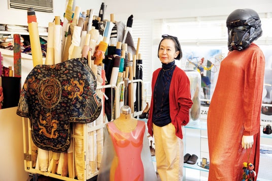 伊藤佐智子さんのアトリエ。長年かけて集めた生地がどっさりストックされている。「大人のおしゃれアーカイブ」より。