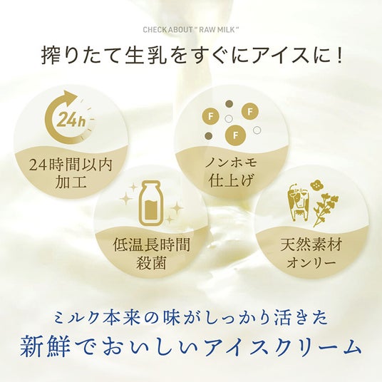 バニラ味が主流とされる中、あえてミルク味を導入。バニラの風味に頼らず、搾りたて牛乳のピュアな美味しさを存分に楽しめます。