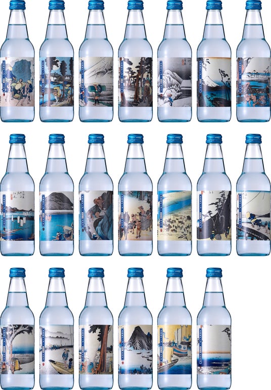 江戸時代の浮世絵師・歌川広重の『東海道五十三次』の原画をデザインに使用。小さな絵画コレクションとして飾れる、目と舌で味わうサイダー