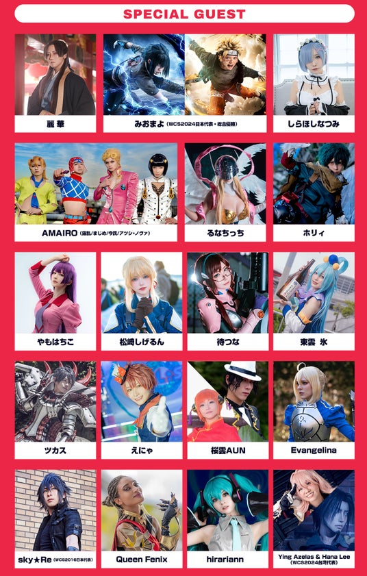世界コスプレサミットで優勝したチームのコスプレパフォーマンスや有名コスプレイヤーたちによるトークショー、ランウェイステージ